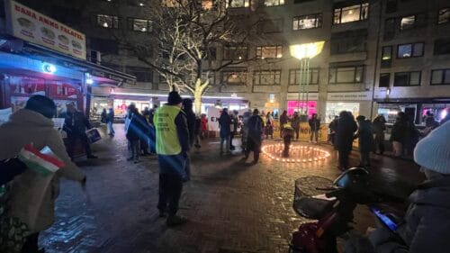 När manifestationen närmade sig slutet hölls en tyst minut och de som hade sina ljus kvar tände dem till minne av de dödade.